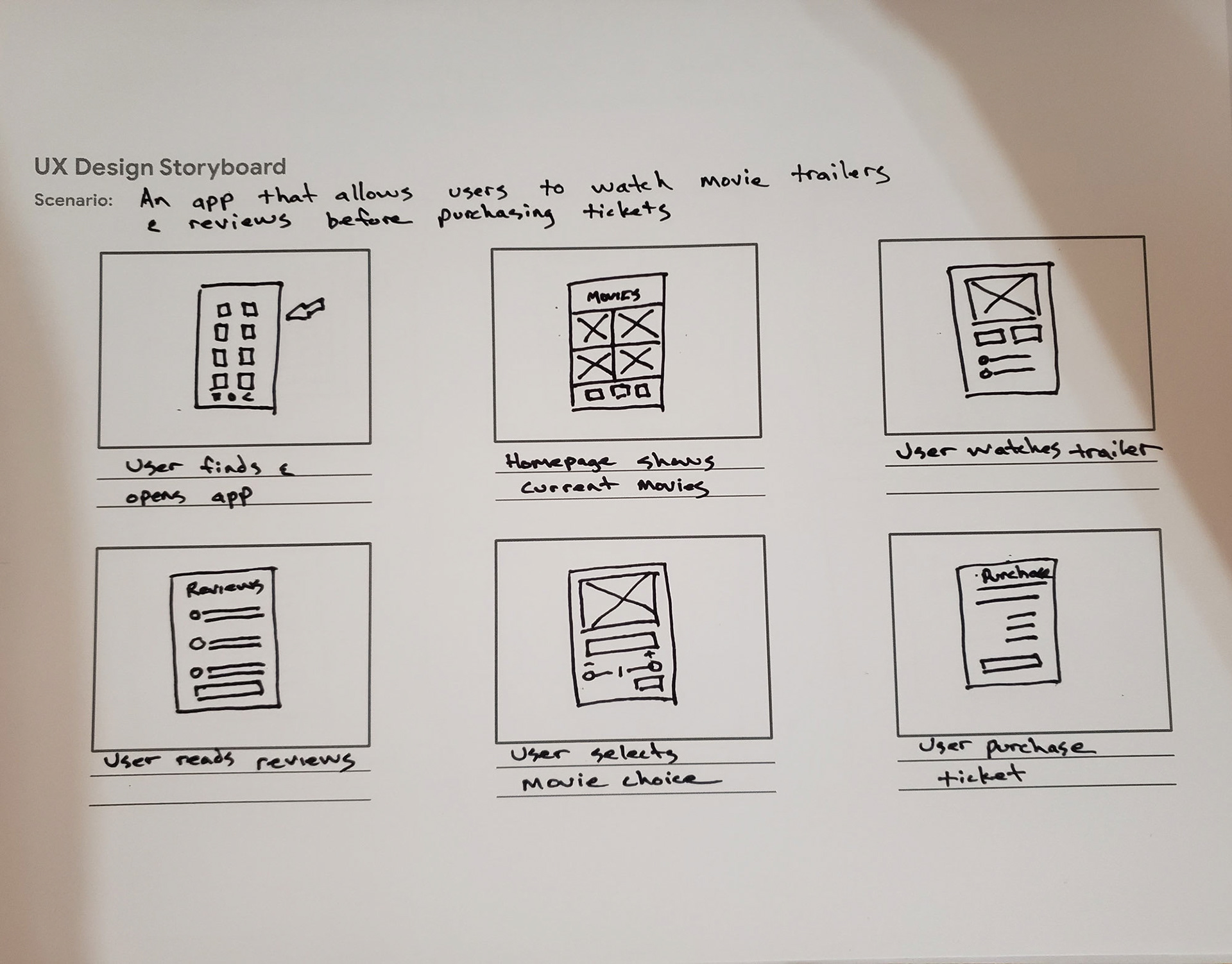 The Goal: Design an app to help users find new movies, watch movie trailers, read reviews, and purchase tickets.